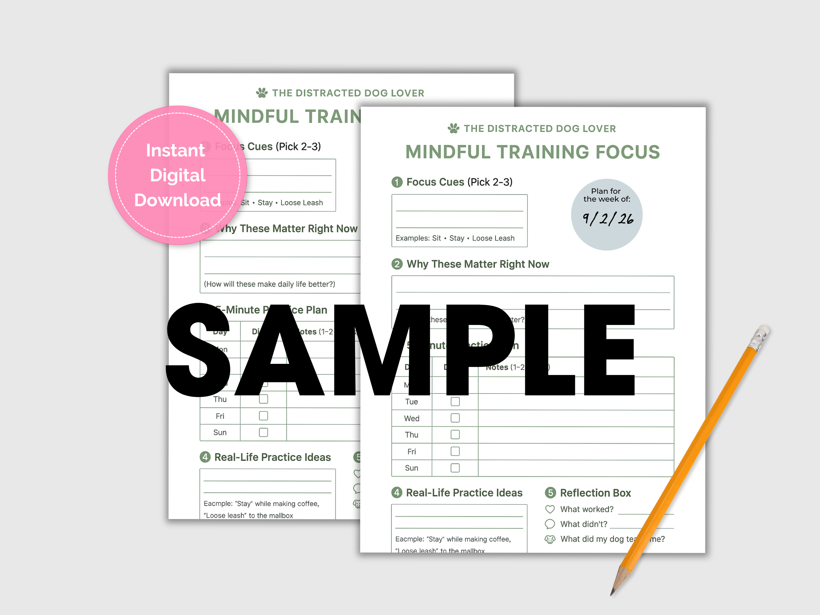 Whether you use my planner or simply jot cues down on paper, put your plan somewhere visible — like the fridge or next to your dog’s leash. A quick visual reminder can help you stay on track even when the day gets busy.